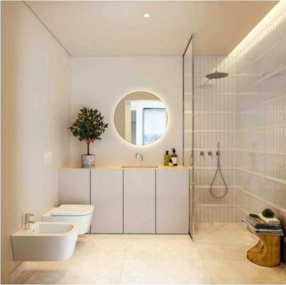 The apartments will be built with traditional, high-quality finishings and materials, with beautiful textures for those privileged to live in front of the sea. Fully equipped kitchens for day-to-day convenience. Large terraces engulfed by the natural sunlight of the Algarve, all facing the sea and the serenity of the exotic gardens that further narrow the perfect symbiosis between the building and the outdoor spaces.
