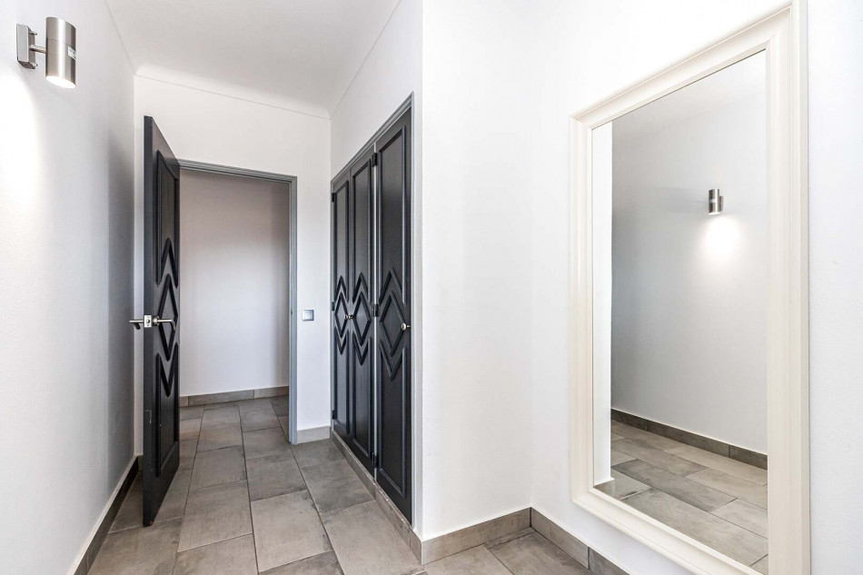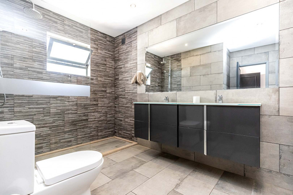 The villa welcomes you through the ground floor area where you will find the main living area, comprising 120m2 of open plan area, a living and dining area with direct access to the terraces. Off the dining area, there is a separate entertainment room, a great space for the kids to enjoy. Adjacent is a separate guest w/c.