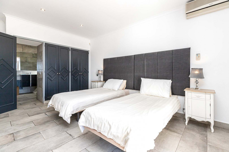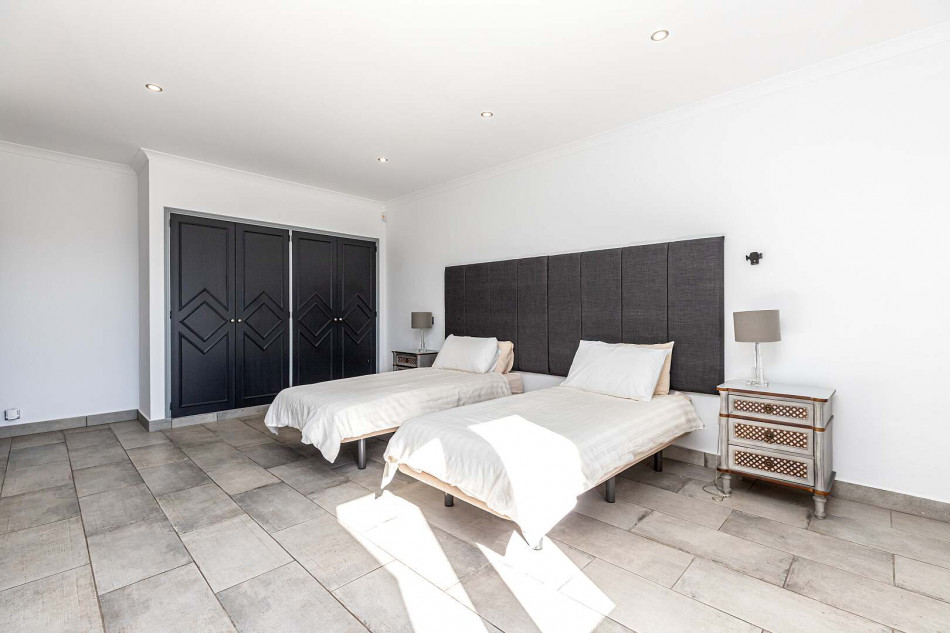 On the first floor is where you will find the master bedroom with a large ensuite shower room, and huge private terrace overlooking the pool and garden area. Lastly, 2 more twin bedrooms, with private terraces, and a shared family shower room with twin wash basins.