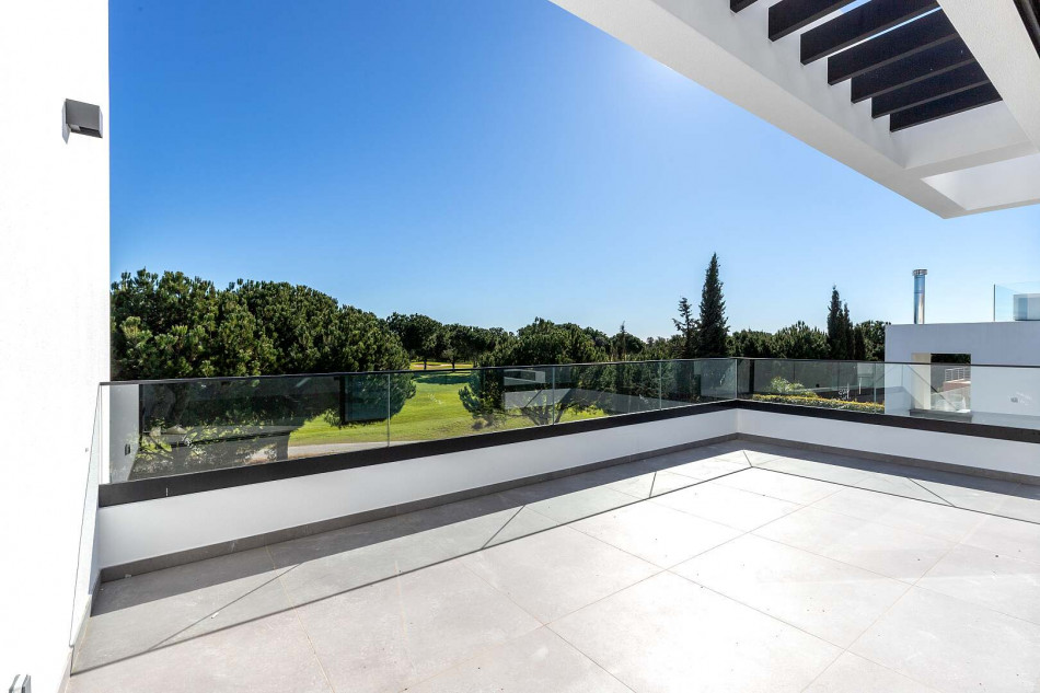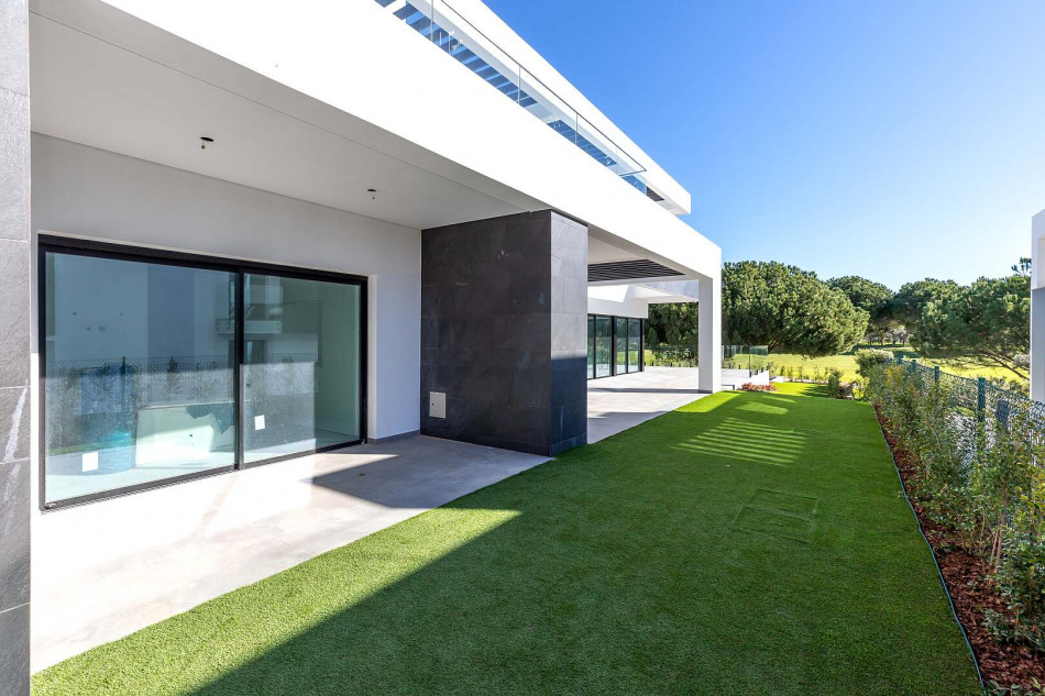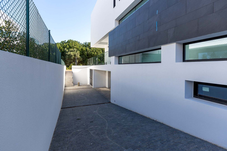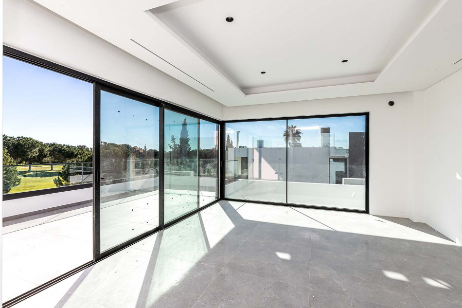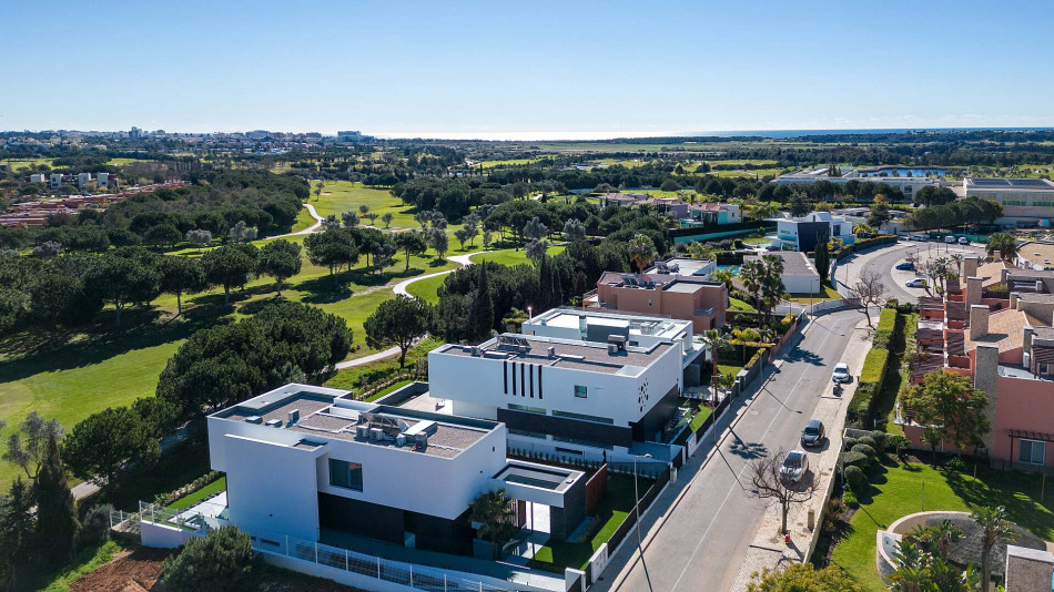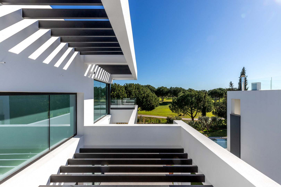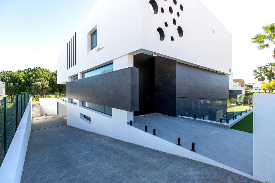 Fabulous property with a unique design in a privileged front-line golf plot in Vilamoura. This contemporary property comprises 3 levels, basement - ground floor - 1st floor, with the bedrooms…