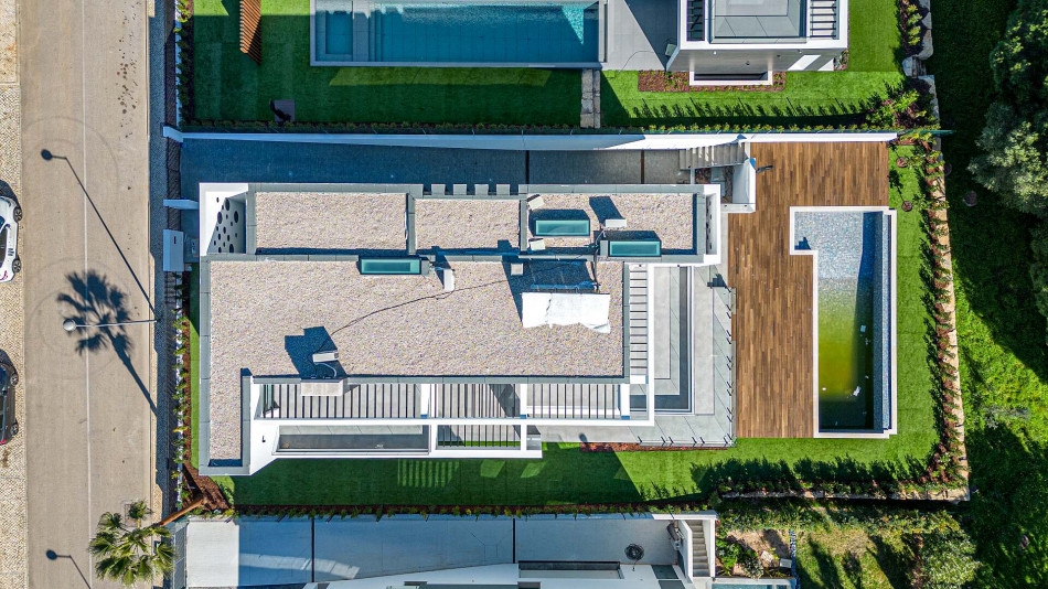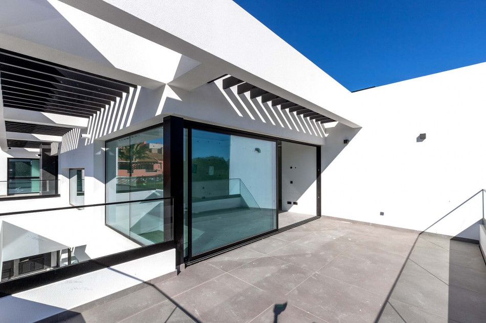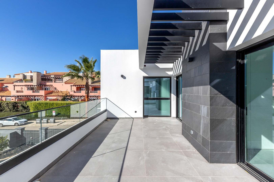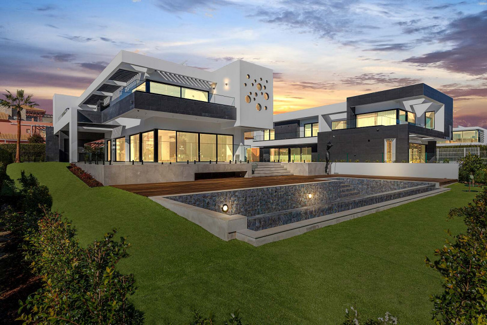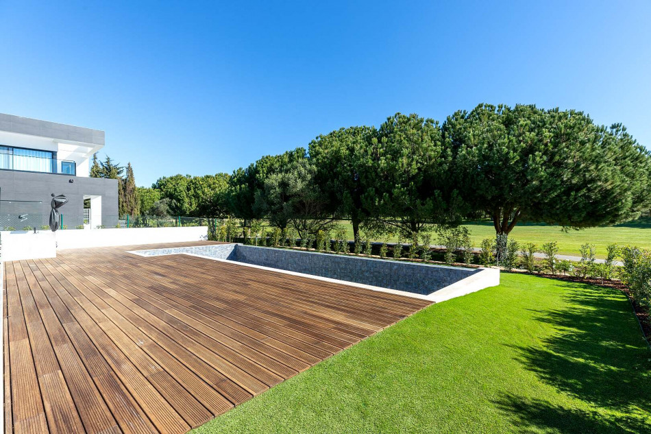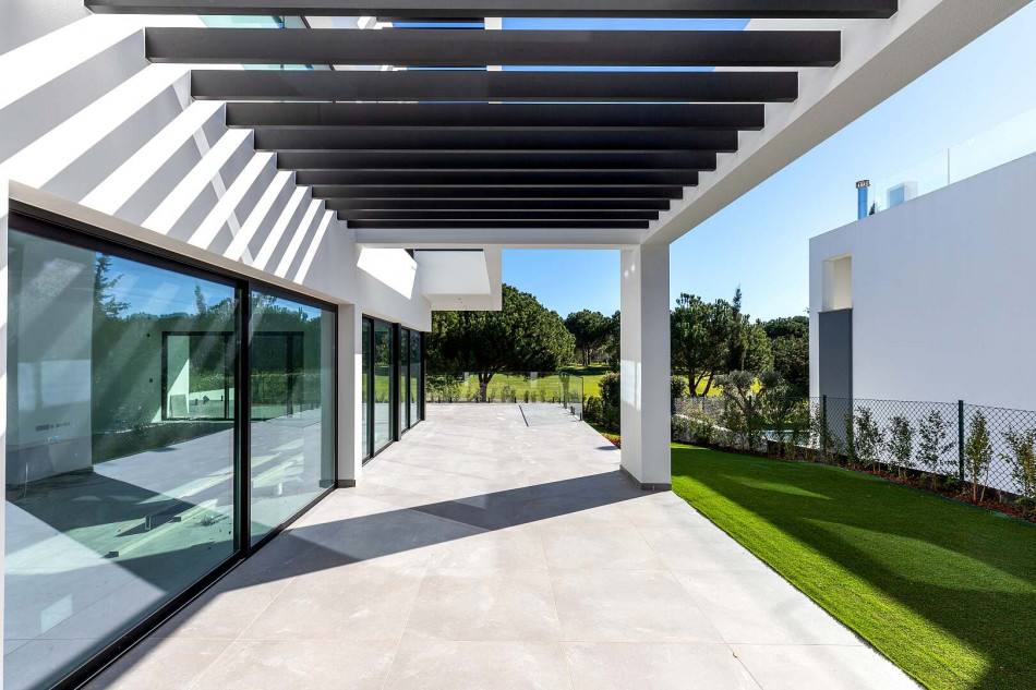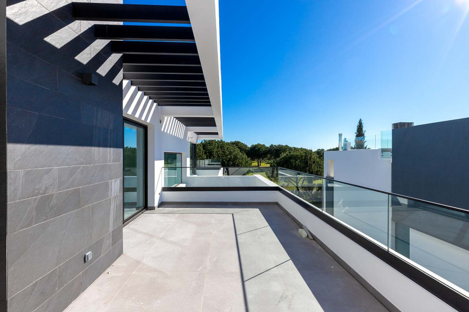Fabulous property with a unique design in a privileged front-line golf plot in Vilamoura. This contemporary property comprises 3 levels, basement - ground floor - 1st floor, with the bedrooms…