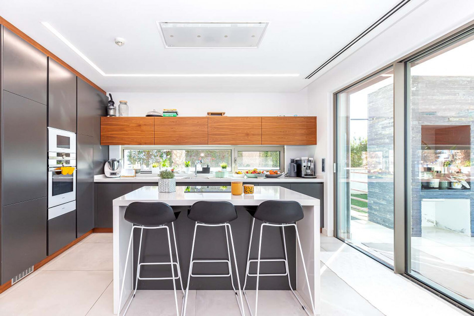 The villa is very comfortable and benefits from air conditioning throughout, as well as water underfloor heating on the ground and 1st-floor levels. It also features solar panels for hot water.