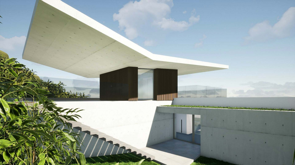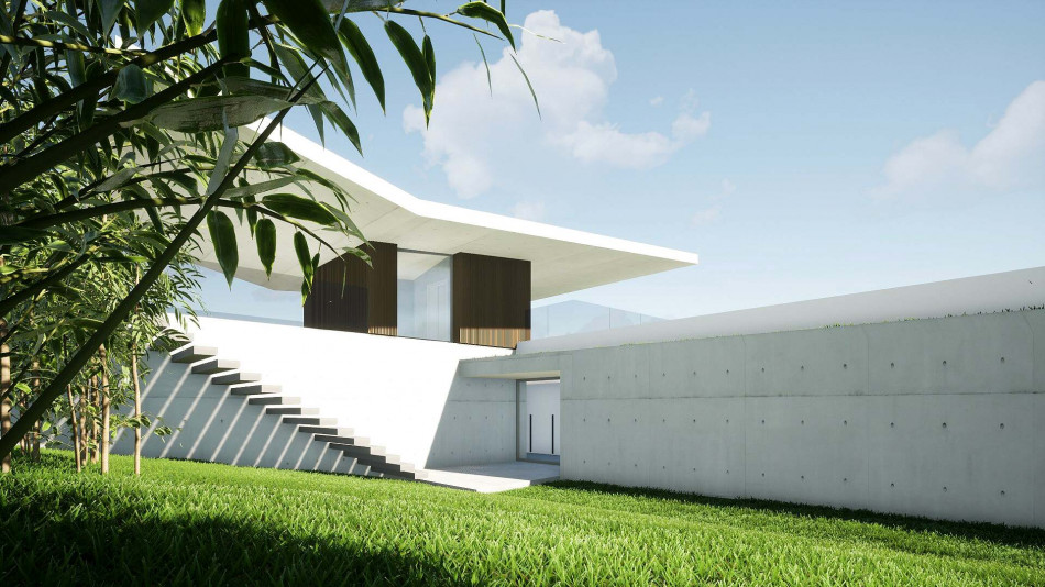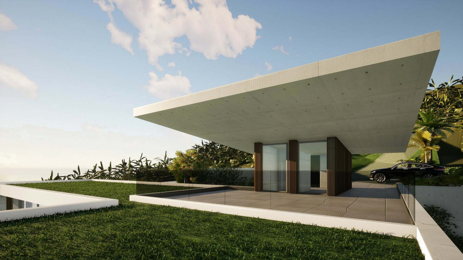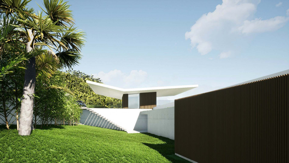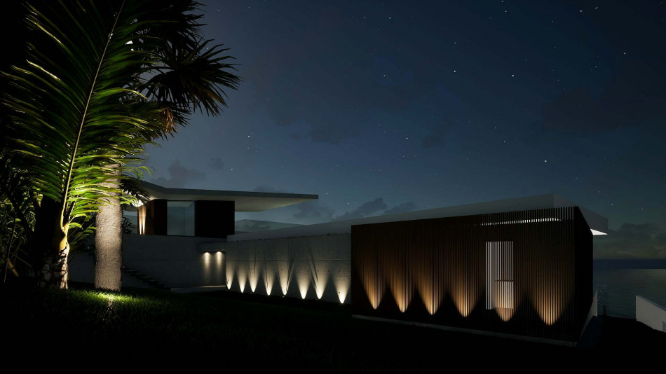 For the outdoor area, a green hedge has been planned all around the property, helping to create an integration with the surrounding landscape, while providing more privacy. Around the house will be a garden with trees/ornamental plants and lawns. Also noteworthy is the staircase leading directly to the beach.