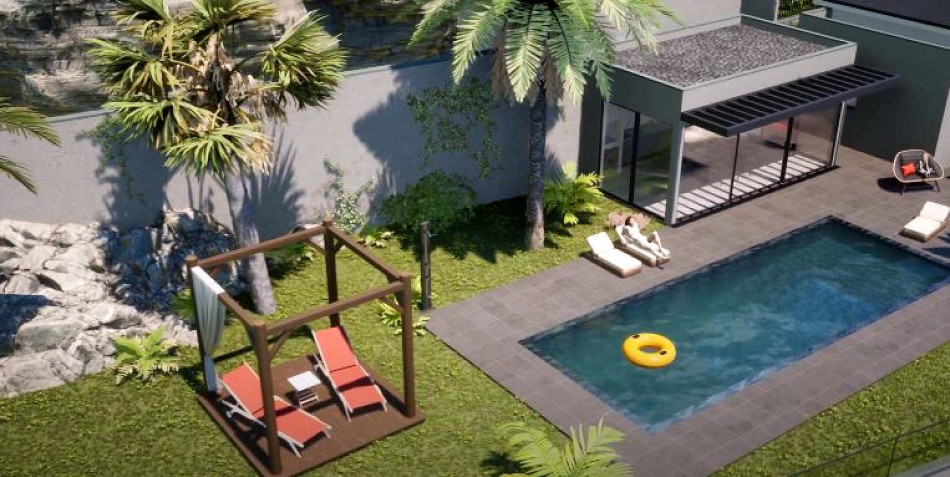 The villa under construction is scheduled to be completed by the end of 2023, thus offering the opportunity to acquire a new and personalized home. The property also has a swimming pool, a shower, a barbecue with a social bathroom and garden areas around the house.