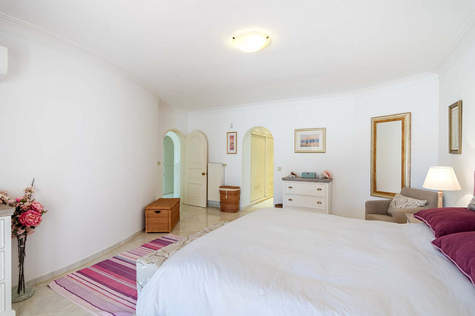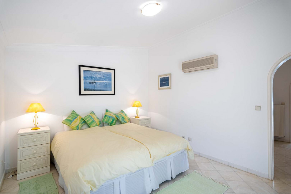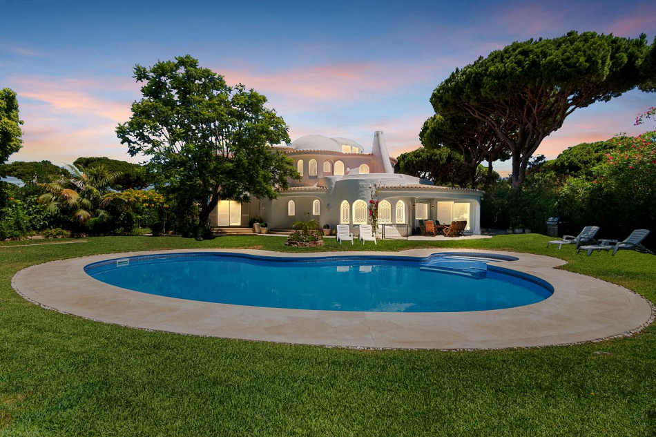 Welcome to this exquisite property nestled in the sought-after area of Vilamoura, where a serene cul-de-sac leads you to a haven of comfort and elegance. Perfectly positioned for easy access to the vibrant marina, this enchanting villa offers a wealth of amenities, including stunning golf course views, a magnificent garden with a large pool, a captivating pond, and a soothing waterfall cascading into the pond.
