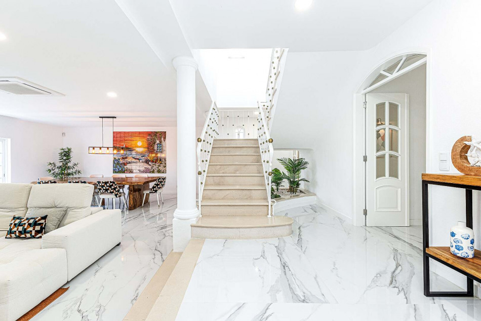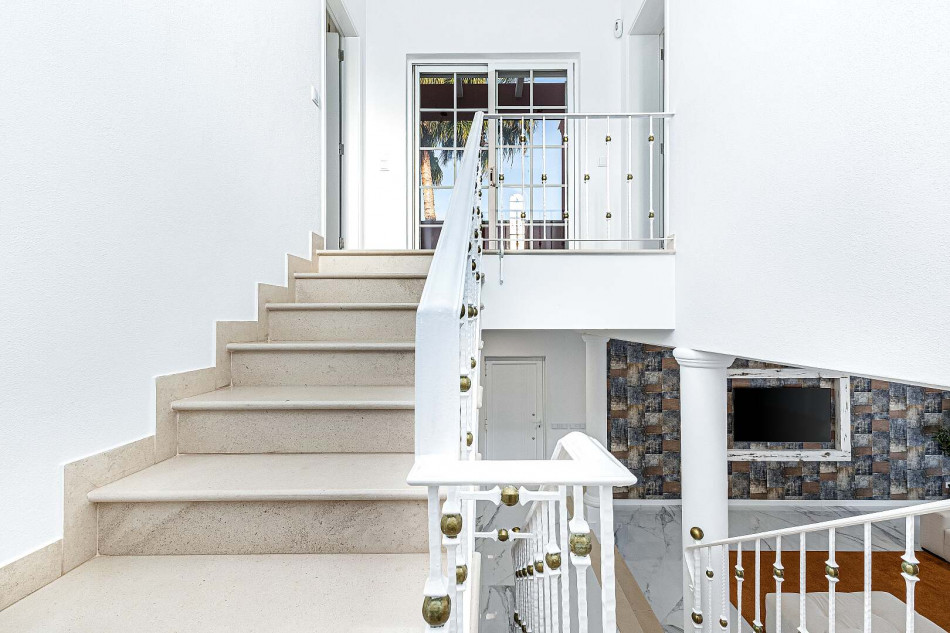 Meticulous attention to detail is evident in every facet of the villa's design, from the thoughtfully crafted layout to the exquisite staircase, which serves as a striking focal point connecting the floors and providing elegant access to the poolside lounge.