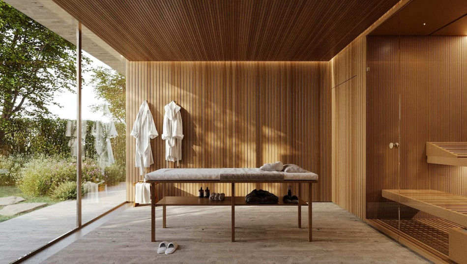 With a wonderful outdoor pool, massage room sauna, gym and a fantastic multifunctional common space.