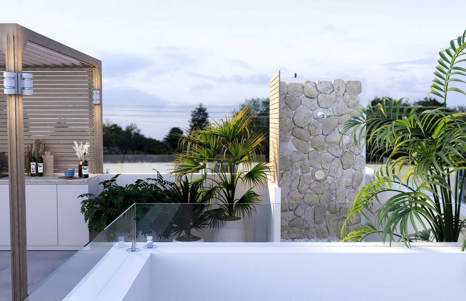 Stunning top-floor apartment with roof terrace and jacuzzi, nice views all around. Set in the exclusive and eco-friendly Lunamar complex, nestled in the charming coastal town of Armação…