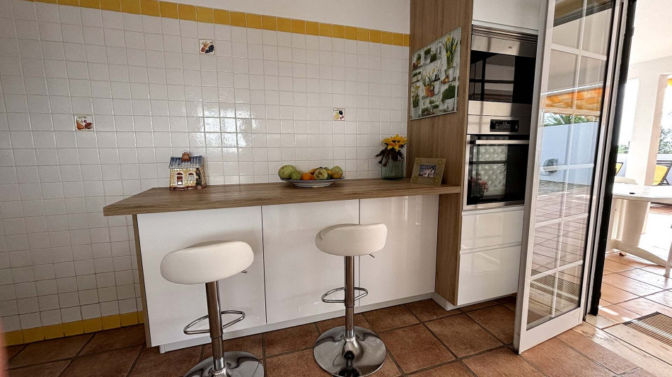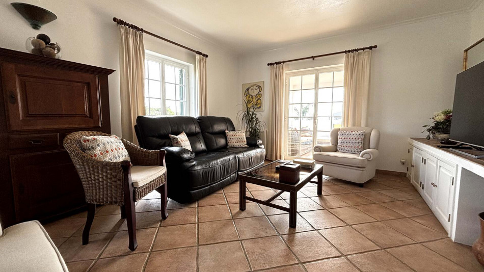 The villa benefits from two separate entrances via different roads and features a beautifully maintained garden. While it does not currently have a pool, there is ample space to build one. Modern amenities include air conditioning in the living room, solar panels, a 60,000-litre cistern, a borehole, and access to both the municipal water supply and sewage system.