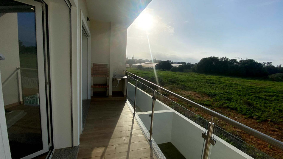 A large balcony with a sink and built-in barbecue, offering sweeping, unobstructed views