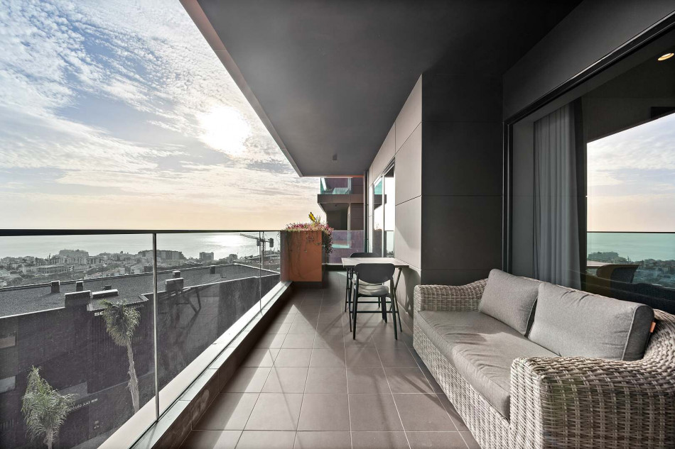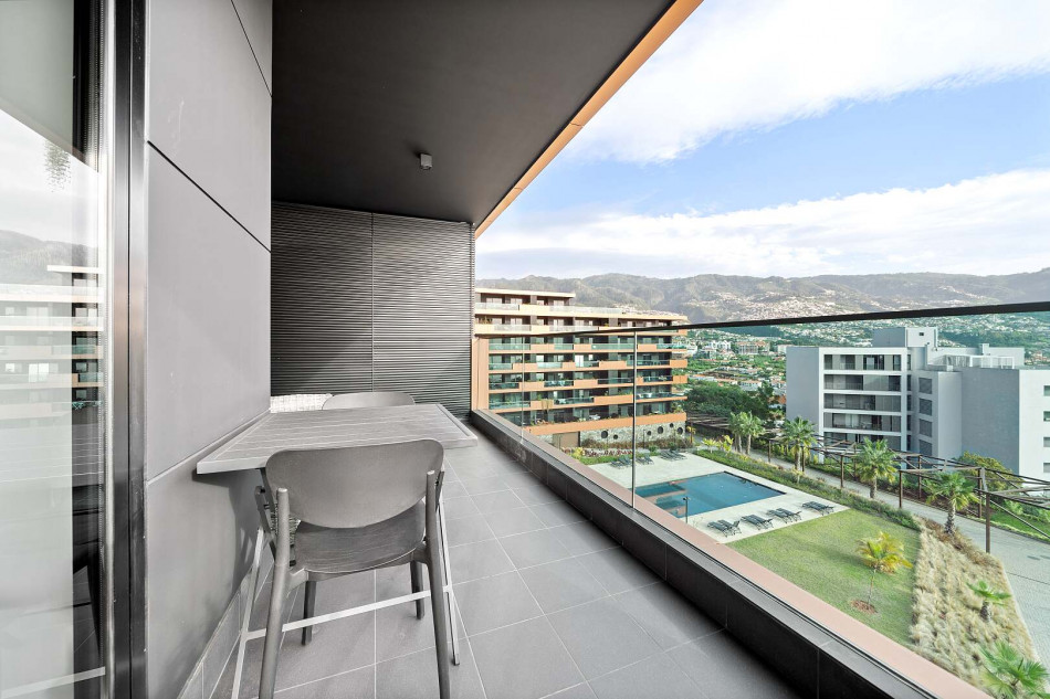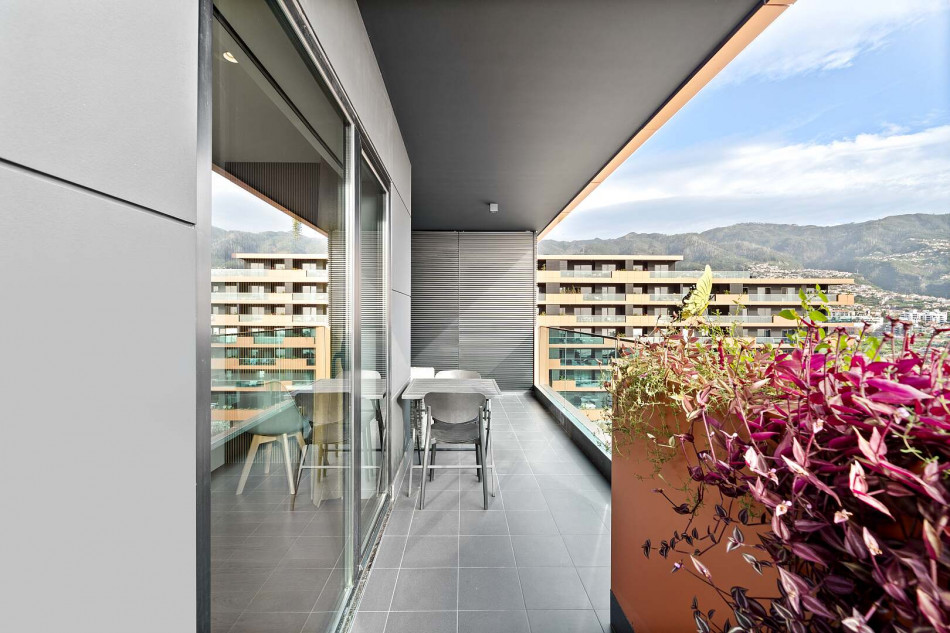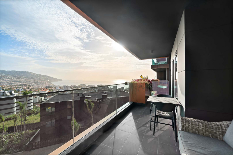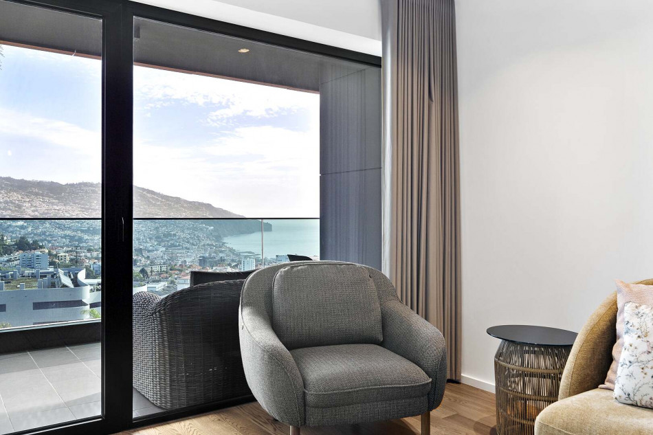 The generously sized balcony offers panoramic vistas of the ocean, mountains, and Funchal. It’s the perfect spot to relax, entertain, or enjoy a quiet morning coffee.