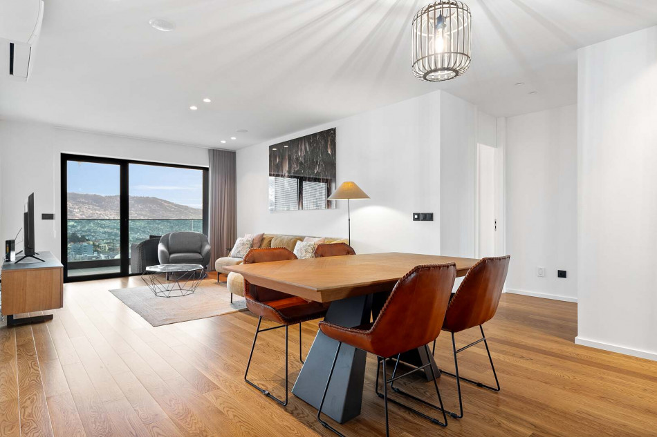This exceptional 2-bedroom apartment is located on the 3rd floor of a brand-new, secure gated community in Funchal. Designed for modern living, it offers a harmonious blend of comfort, functionality, and breathtaking views of the ocean, mountains, and the charming city of Funchal. With its prime location, luxurious finishes, and a licensed short-term rental setup, this property is perfect for investors or those looking for a dream home in Madeira.