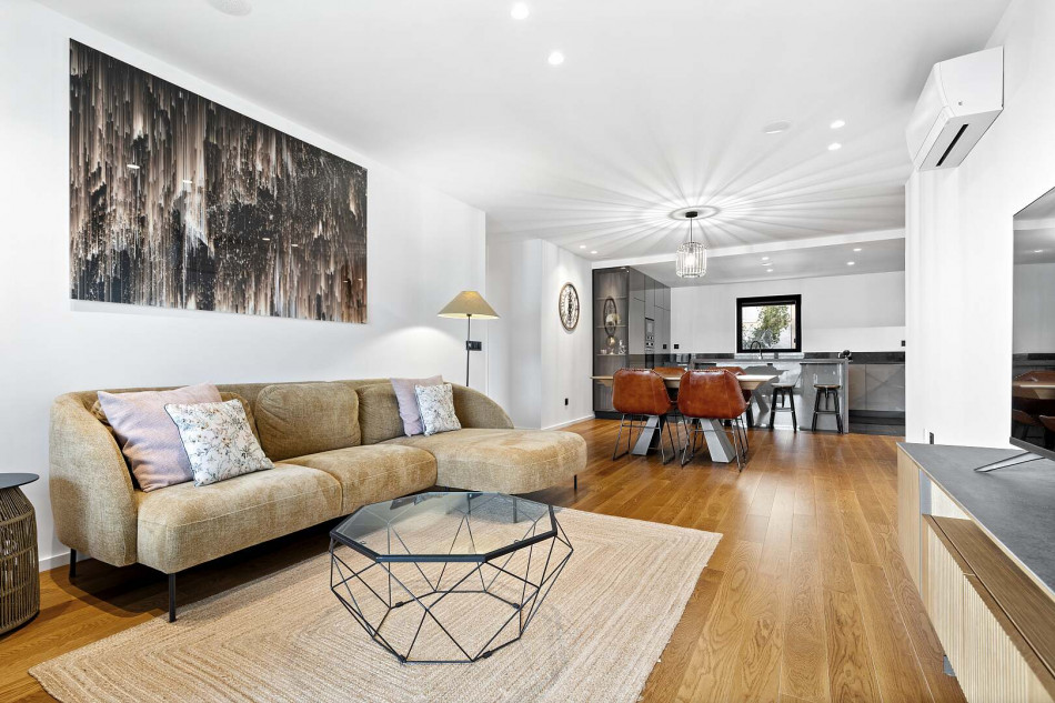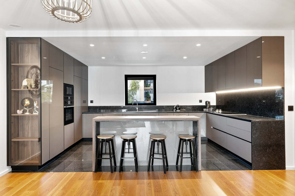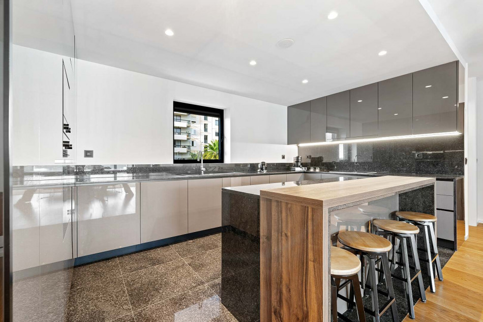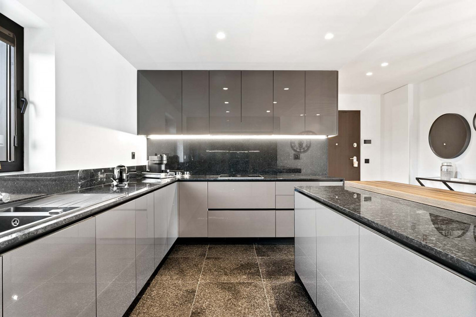 The open-plan kitchen is equipped with state-of-the-art appliances, seamlessly blending functionality with style. With modern cabinetry and premium countertops, it’s ideal for preparing meals or entertaining guests.