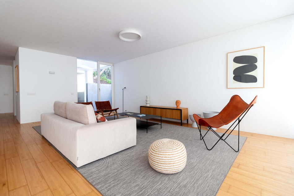 This set of villas is located in the parish of São Martinho, municipality of Funchal, in a tourist area, where its surroundings are dominated by hotels, accommodation and some commercial units. The area is served by good pedestrian and road accessibility, as well as public transport. Architecture The "Casas Brancas" development is located on a rectangular geometric plot of land, with about 3,322 m2. From the implantation, a better optimization and use of the morphology of the land was sought, with the aim of improving not only the use of this space but also creating new and correct street fronts with an adequate scale. For this to happen, it was decided to maintain the morphology of the land in the areas that flank the building bodies, implanted at predominant level levels, thus leaving the rest of the land as natural as possible.