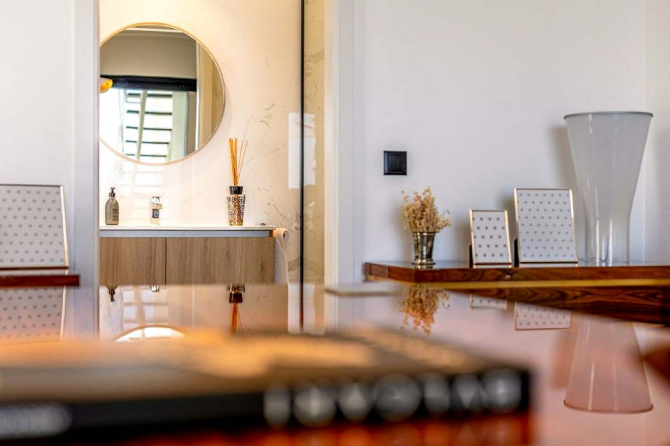 -Huge dining and living room, five suites, kitchen and laundry well equiped, many different wardrobes, for general clothes and just for shoes.