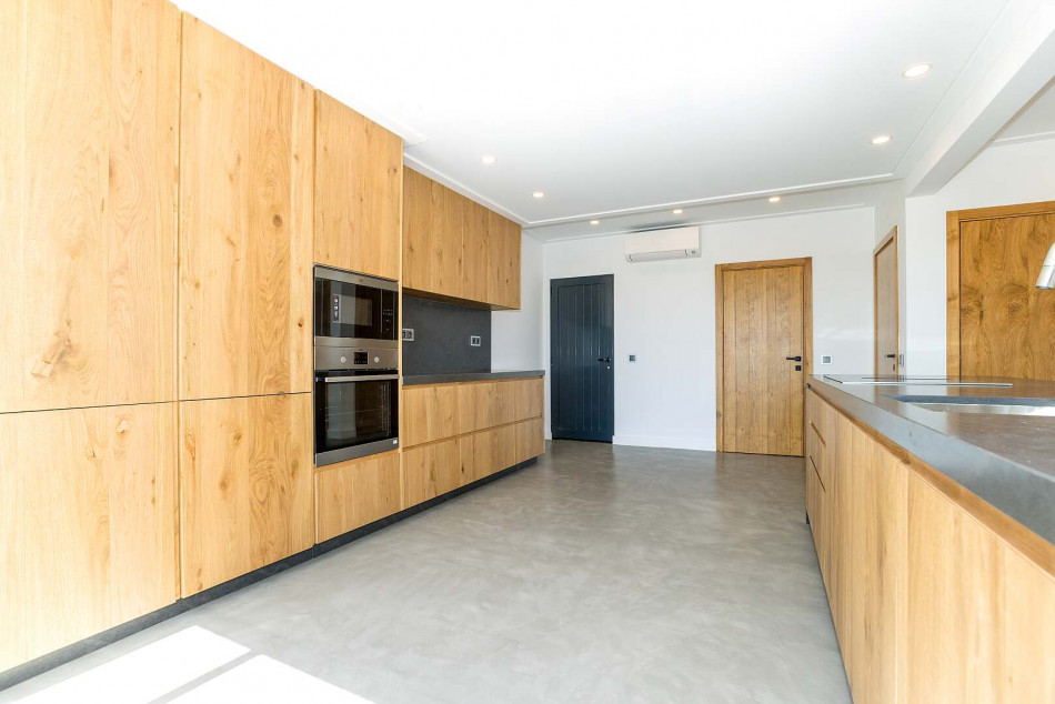 The master suite boasts an en-suite bathroom and opens onto a private terrace with breathtaking sea views, ideal for morning coffee or sunset relaxation.