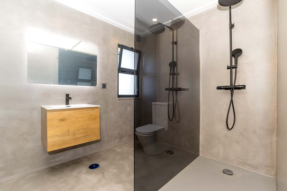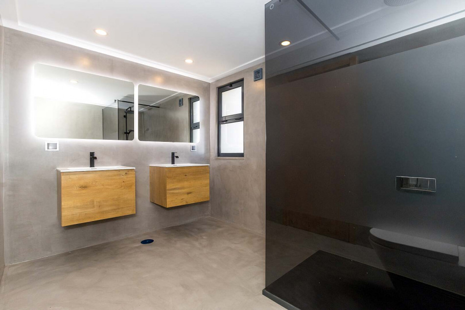 Fitted with premium materials, modern showers, LED mirrors, and sleek wall-mounted sinks.