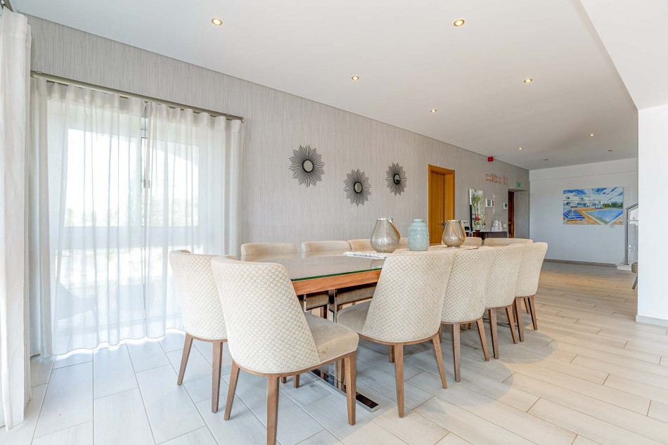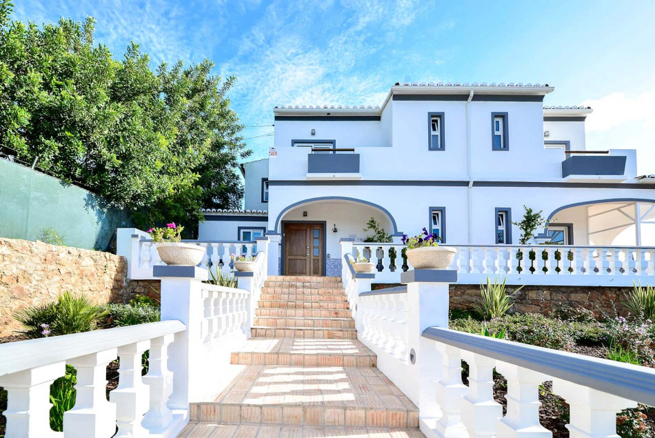 Set in a tranquil hillside just outside the historic village of Estoi, Vila Vale Mouro is a stunning six-bedroom estate offering refined Algarve living with 180° panoramic views across Faro to the Atlantic Ocean. Originally established as a private residence and later completely renovated in 2019, the villa blends authentic Portuguese character with contemporary comfort, making it ideal as both a luxury family home and a high-end rental investment.