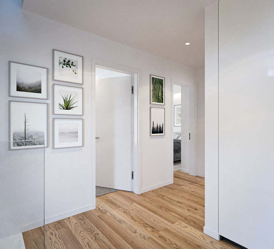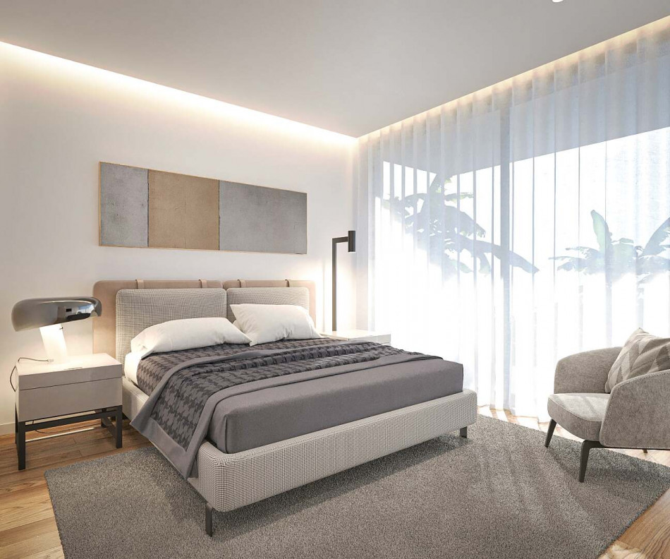 High-quality finishes: 100x100 ceramic flooring, lacquered doors and wardrobes with LED lighting, Technal aluminium windows with thermal break and solar-treated glass