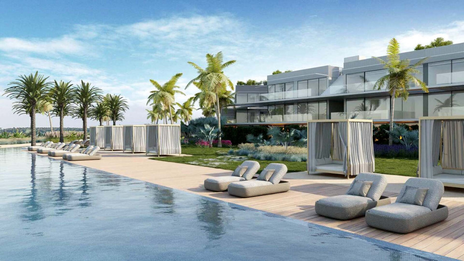 Every element within this residence speaks to extraordinary attention to detail. The open-concept living spaces feature floor-to-ceiling minimalist windows that flood the interior with natural light while framing mesmeriisg views of the surrounding water canals and golf fairways. Premium Italian marble flooring extends throughout, complemented by bespoke cabinetry crafted from the finest Portuguese walnut.