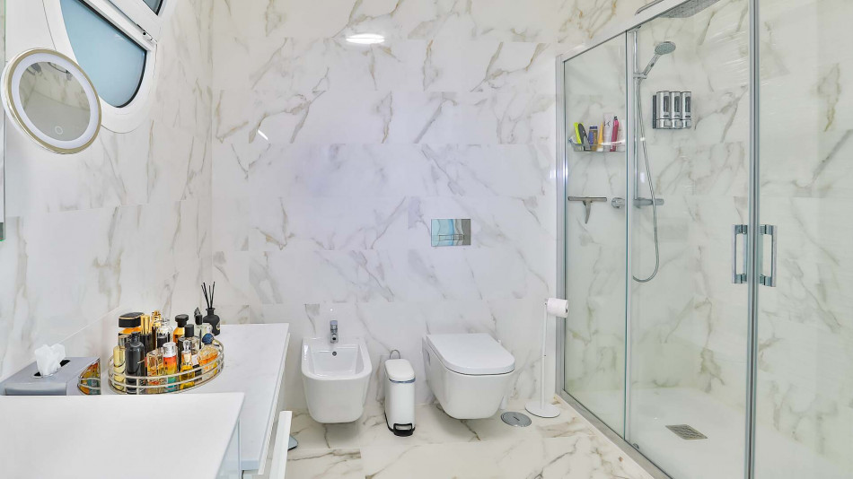 Fully furnished with stylish, modern furniture, the apartment is also equipped with air conditioning, a video intercom system, secure entry doors, electric shutters, and two dedicated parking spaces in the building’s garage.