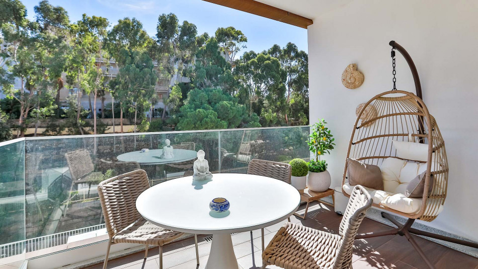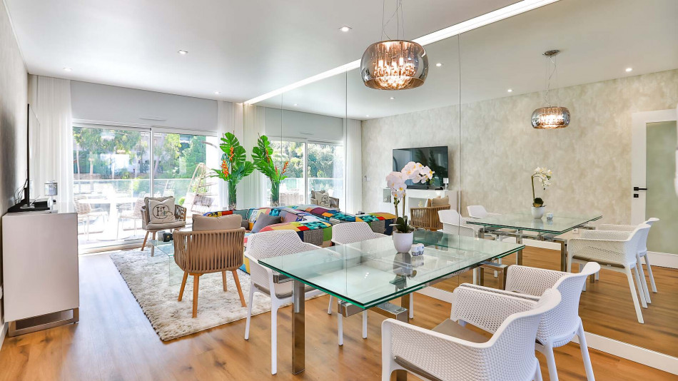 With its southern orientation, the apartment enjoys abundant natural light and a lovely view over the swimming pool terrace from the balcony.