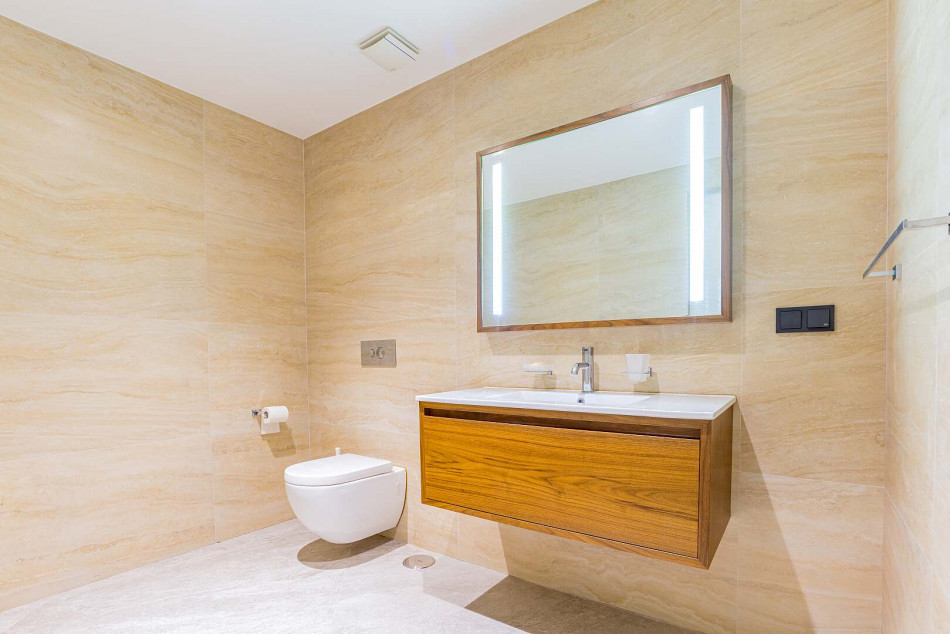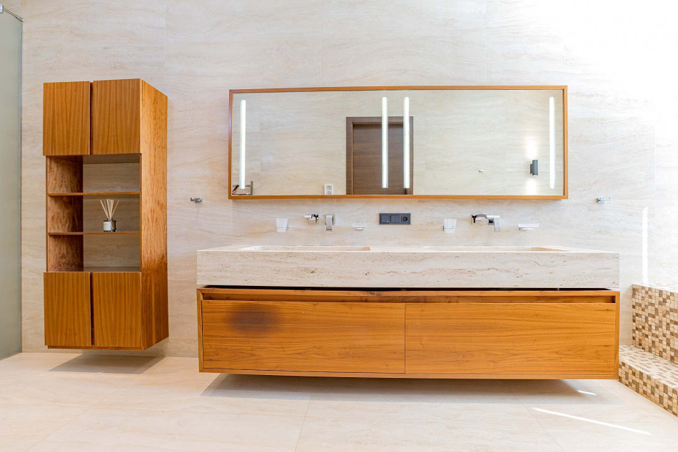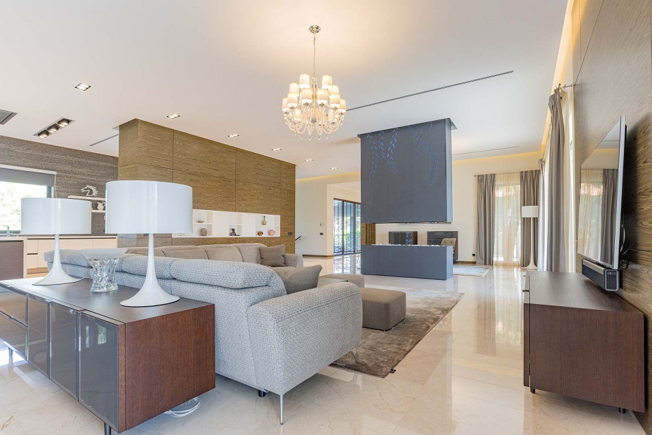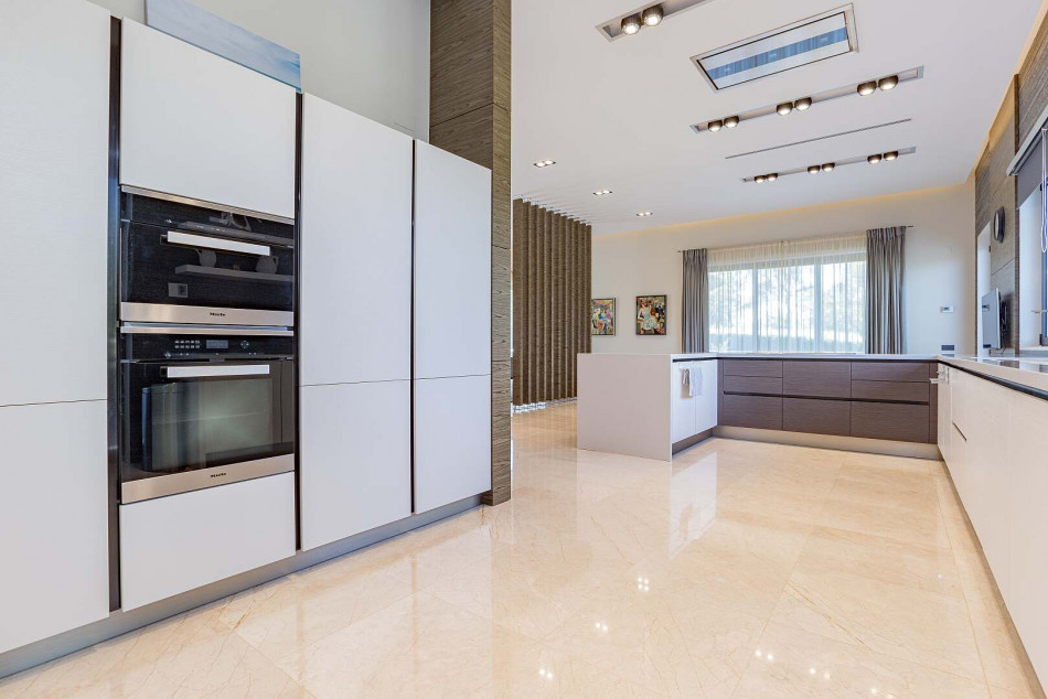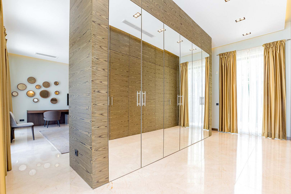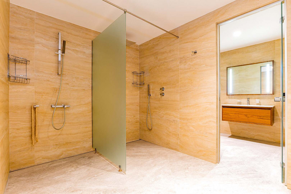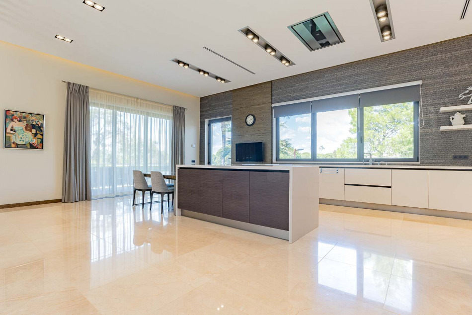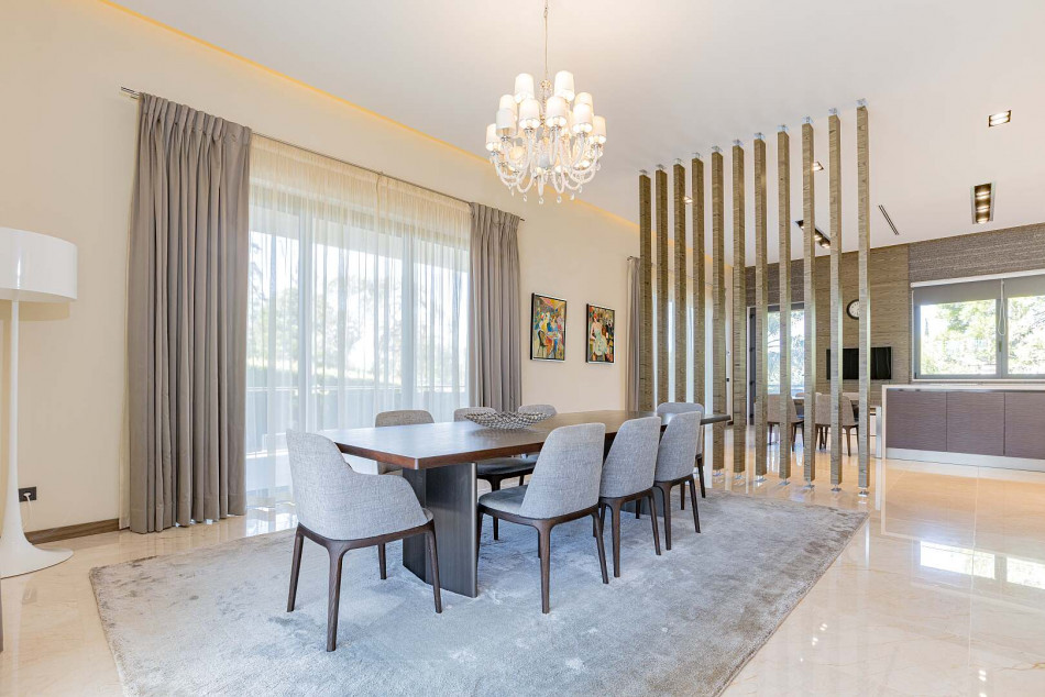 The villa’s architecture draws inspiration from contemporary Mediterranean sensibilities – clean lines, warm tones, and an earthy palette. Locally sourced natural stone clads both interior and exterior surfaces, grounding the home in its environment while exuding timeless elegance.